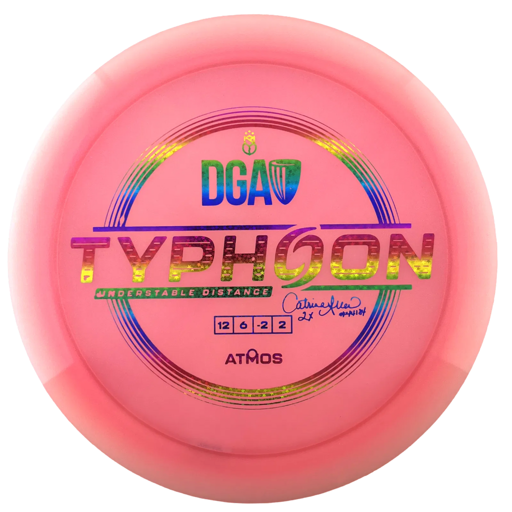 Catrina Allen Atmos Typhoon – A stable distance driver that absolutely bombs. Coming in at 12, 5, -2, 2 flight numbers, this disc handles power well without being too overstable. This is great for someone that wants a slightly beat up Hurricane that gets a ton of distance but isn’t too flippy. When we threw these in the field we found them to be somewhat less stable than a Zeus but it wasn’t a huge difference between the two. Make sure you pick up a Catrina Allen Atmos Typhoon today.