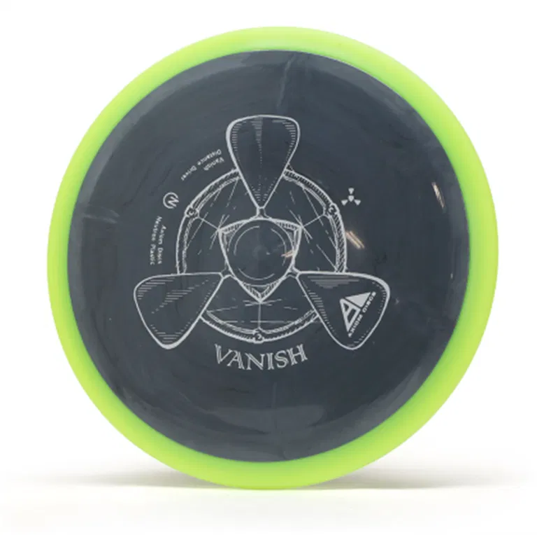 The Vanish will be straight to understable depending on the thrower and wind conditions. The Vanish’s stability profile places it near a threshold of being straight at low power or in tailwinds, and controllably understable at high power or in mild headwinds. As a 21mm class GYRO® driver, the Vanish is designed to hit a midpoint of stability between two MVP Disc Sports models, the Wave and Orbital.